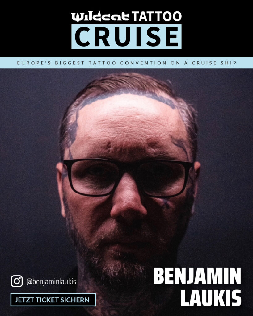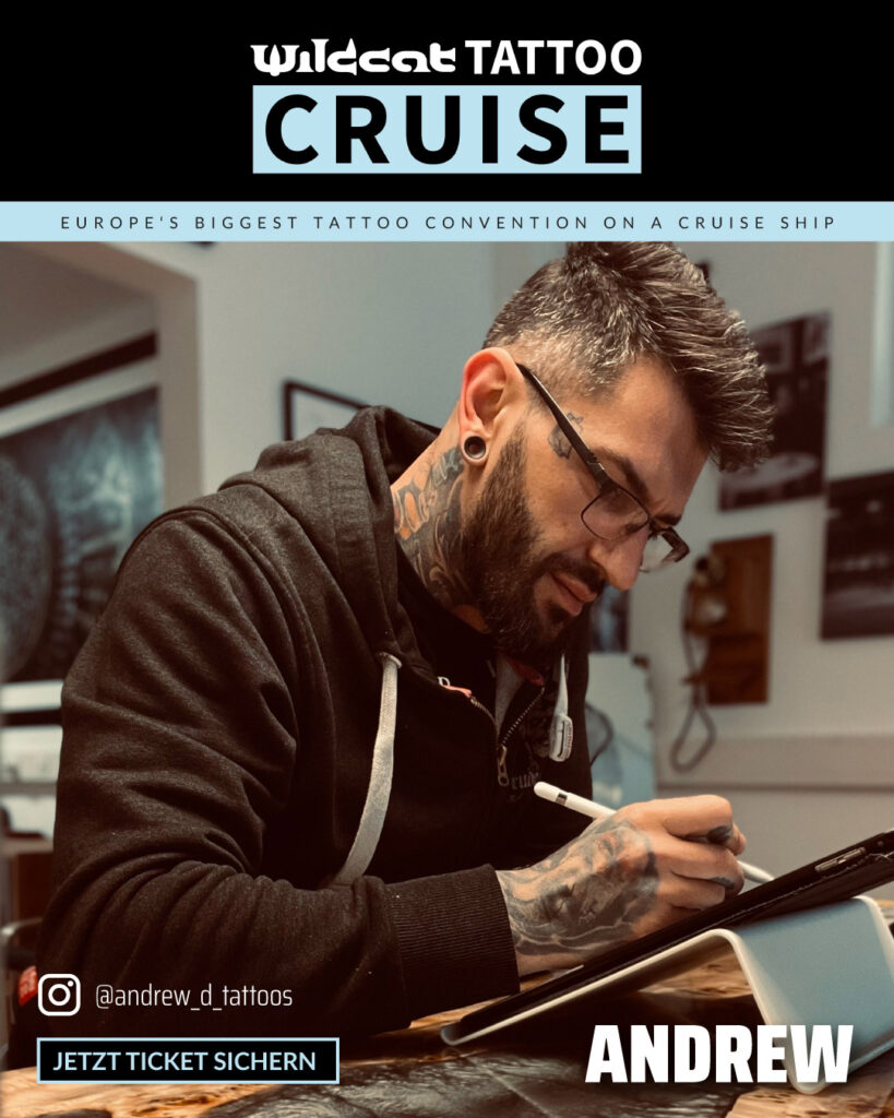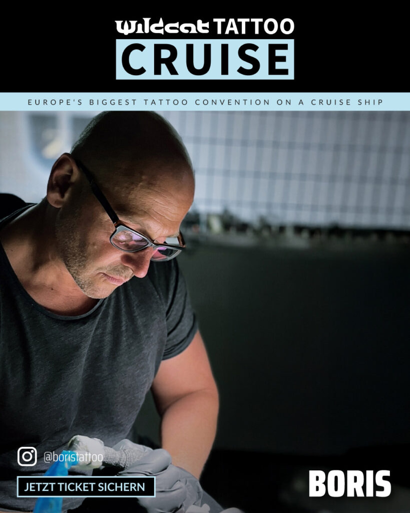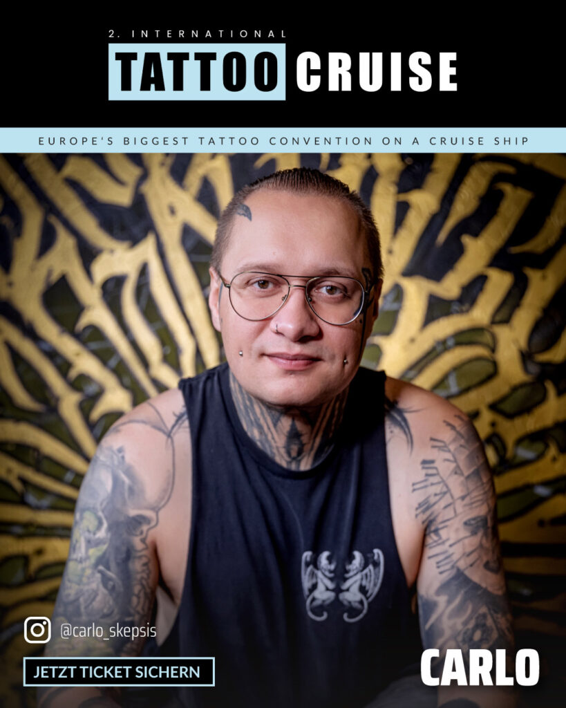 At TattooCruise 2026, he looks forward to presenting his work, making new contacts, and sharing inspiration with other artists.