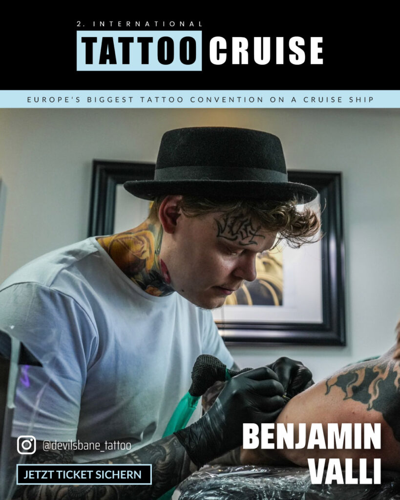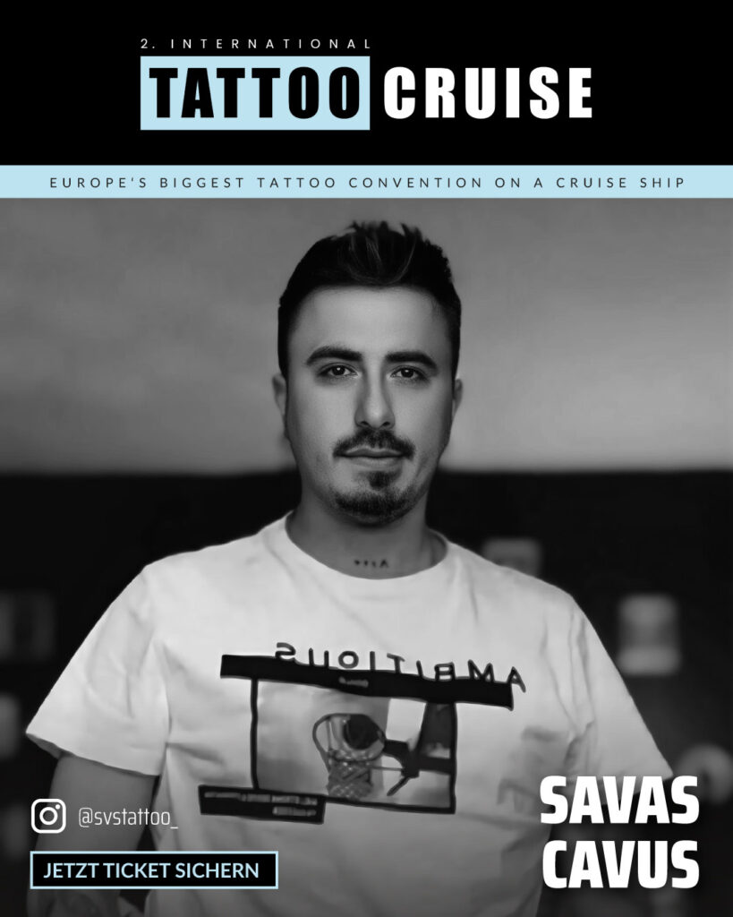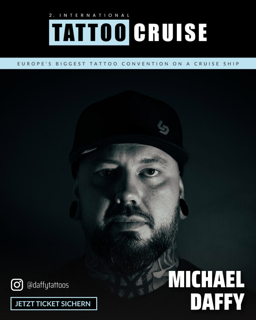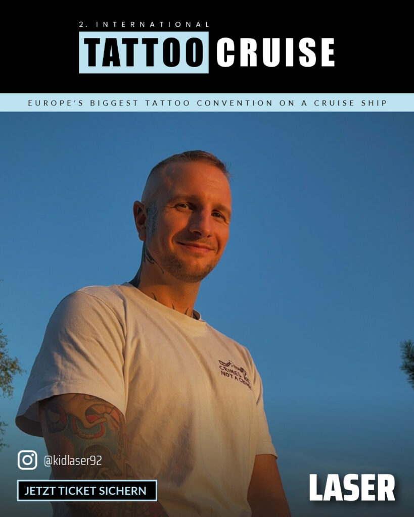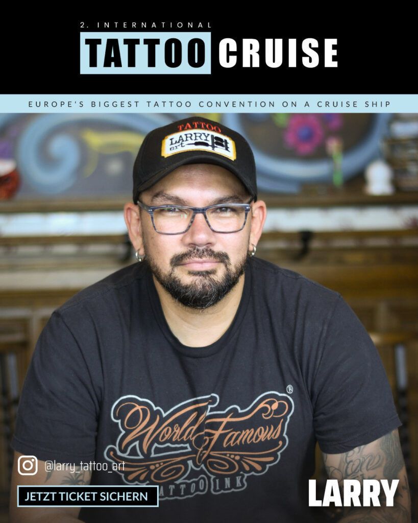 At TattooCruise 2026, he looks forward to presenting his work, making new contacts, and sharing inspiration with other artists.