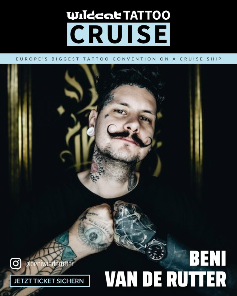 He is also active in the scene away from the needle: he hosts Germany's largest tattoo podcast, Tales from the Needle.