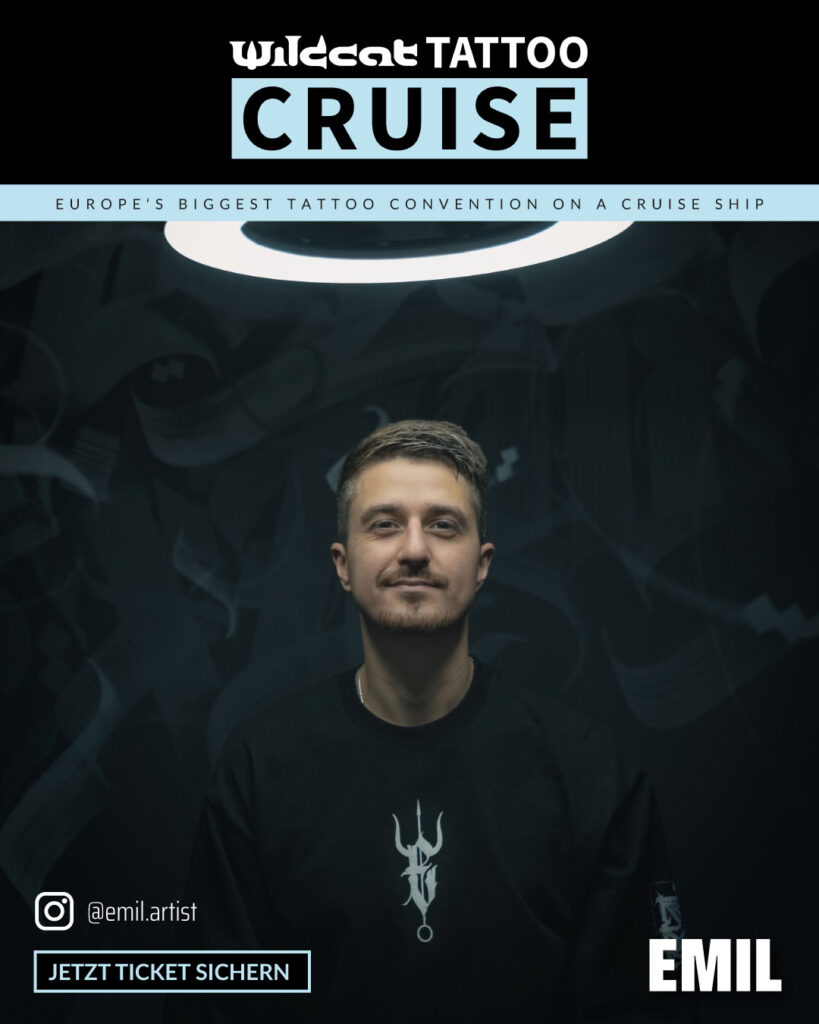 Since 2013, Emil has devoted himself to tattooing—but not just any style, rather the style itself. His works are visual time capsules: satirical, pointed, and always with an eye on what moves our times.