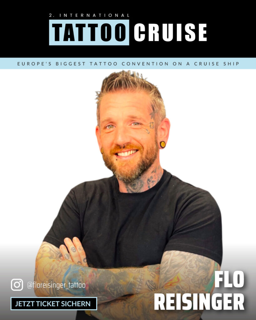 Flo is 41 years old, comes from his own studio “Drunken Sailor Tattoos” and has been tattooing for 7 years.